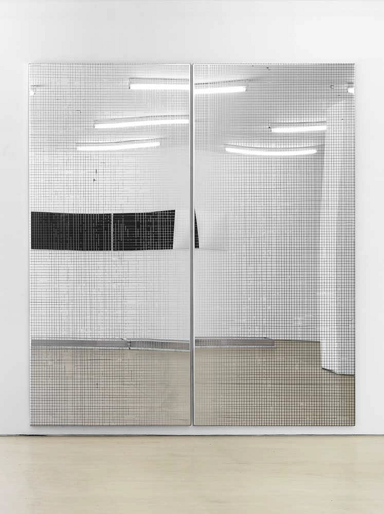 UV curable ink on mirrir polished steel and accompanying drawing, 236.2 x 228.6 cm (93 x 90 in.)